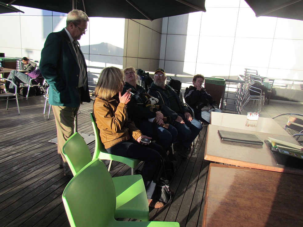 Waiting for the bus between Terminal 1 and 2 - Frederik, Johan deB, André M, Bernard, Alison