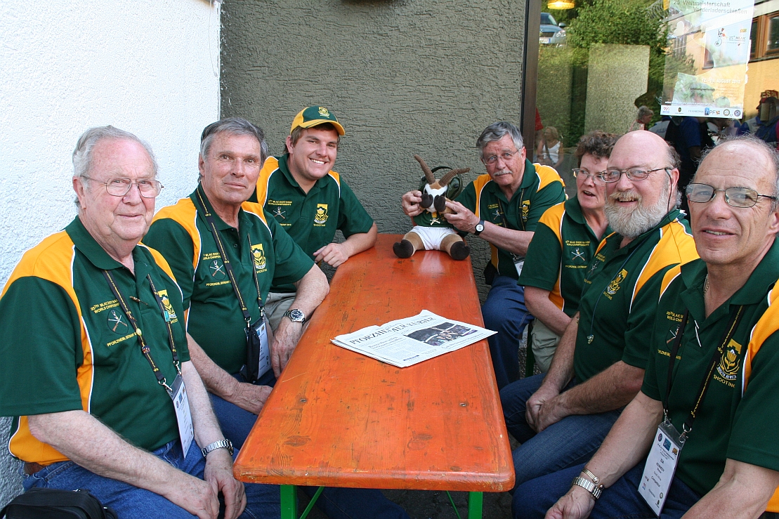 On the range - Bernard, André M, Frederik, our Mascot Bokkie, Johan vW, Alison, André S, Shaun