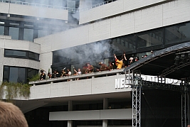 Firing openinig salvo from the balcony as part of the Opening ceremony |