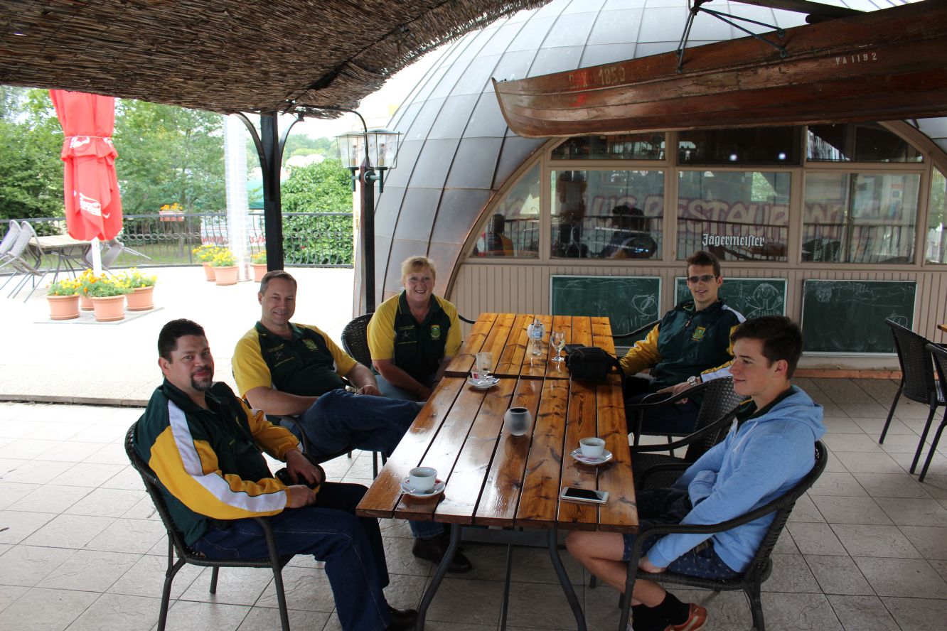 Having our first coffee at the hotel. Jacques, Chris, Pieter, Gustav &