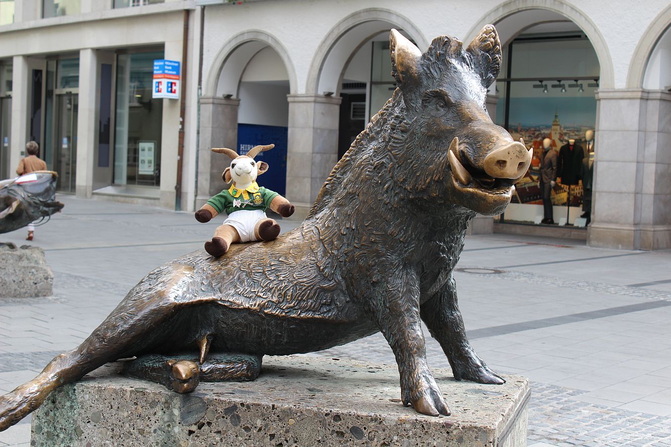 Bokkie riding rodeo on a warthog near Marienplaz |